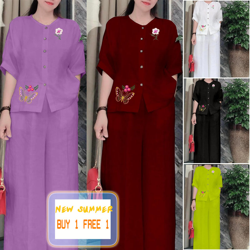 - 【beli 1 gratis 1】Penumpang baru! Kualitas tinggi kapas dan linen set 2 potong (atas+celana)Rp310.000Rincian