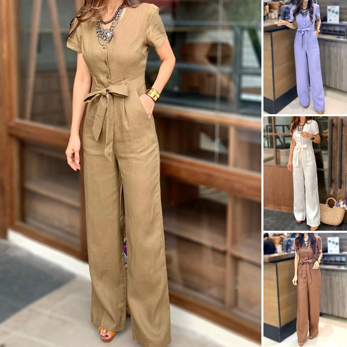 - Jumpsuit Saku Depan Dasi Setengah Kancing Kerah V【beli satu gratis satu】Rp329.000Rincian