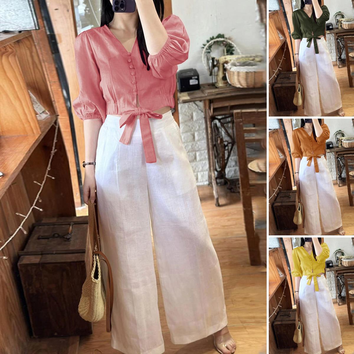 - Wanita 2 Piece Outfit Sets Cotton Loose gayaRp319.000Rincian