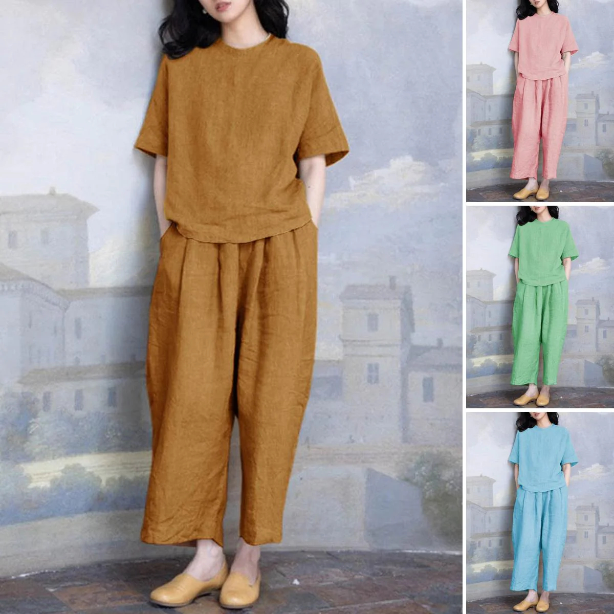 - Set 2 potong celana lebar kaki katun dan linen warna solid gaya Jepang yang eleganRp299.000Rincian
