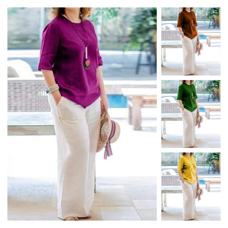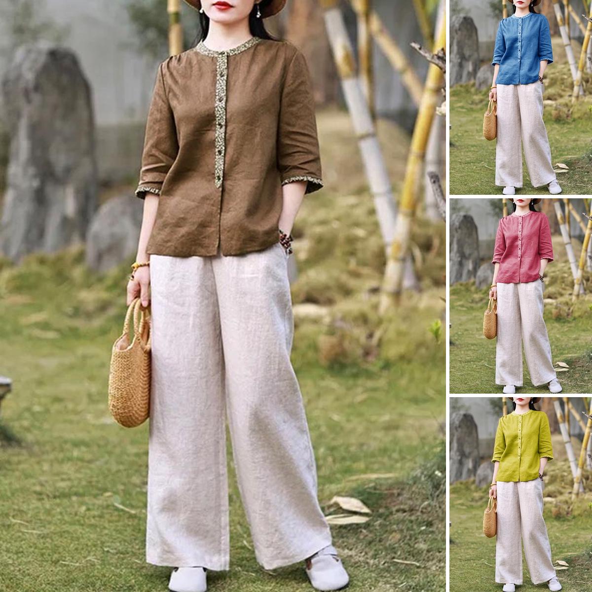 - Setelan lengan tiga perempat katun linen warna solid busana kasual wanitaRp299.000Rincian