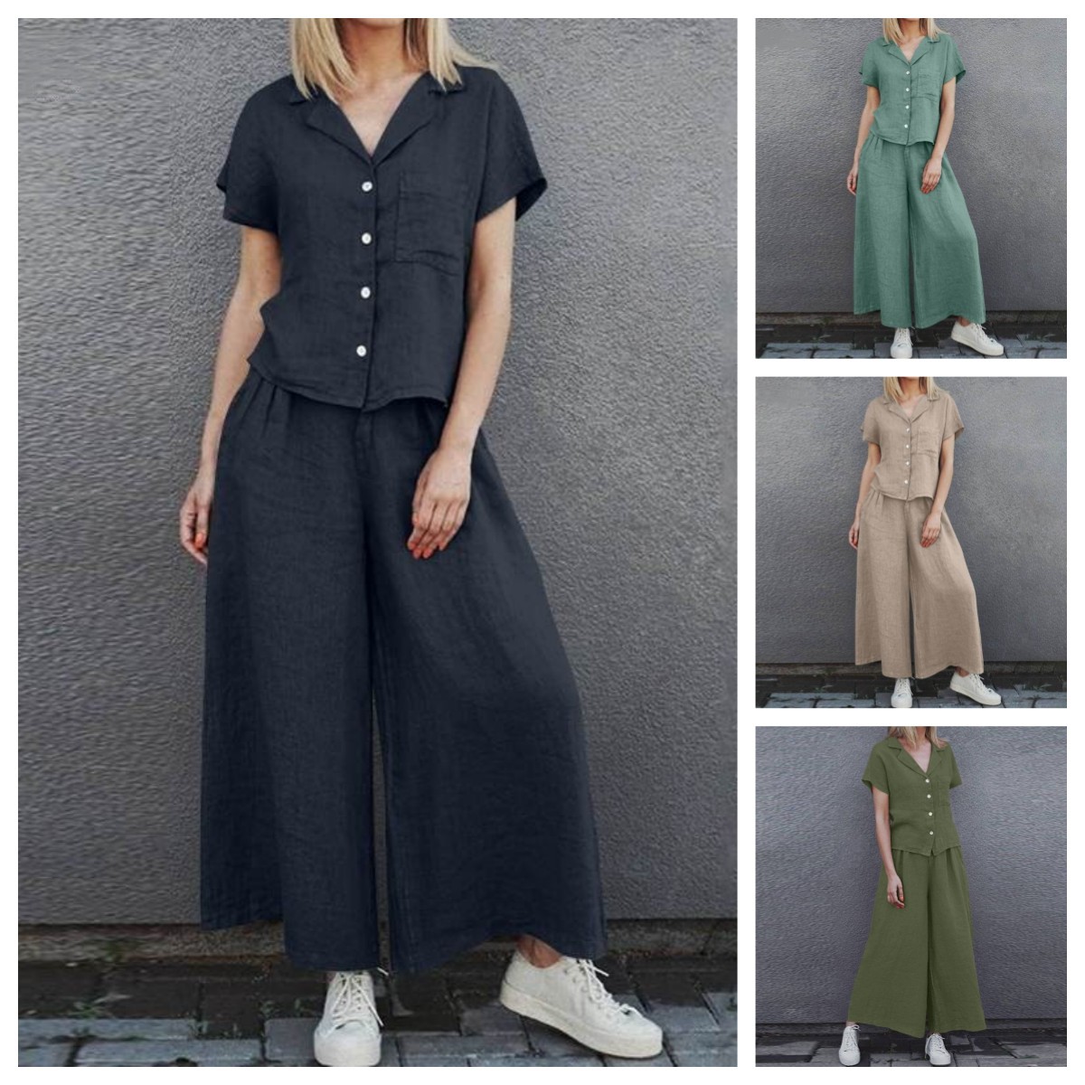 - Set 2 potong celana lebar kaki katun dan linen warna solid gaya Jepang yang eleganRp299.000Rincian