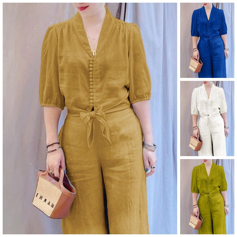 - Set 2 potong celana lebar kaki katun dan linen warna solid gaya Jepang yang eleganRp299.000Rincian
