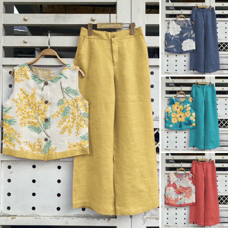2 Menit LaluSetelan katun dan linen tanpa lengan, celana pinggang elastis lurus, kain berkualitas tinggi - beli satu gratis satu(2 sets)