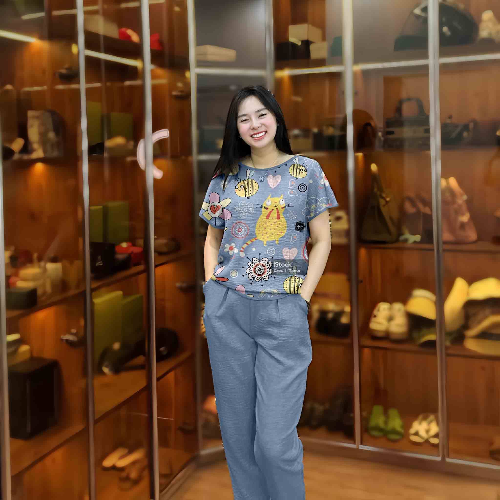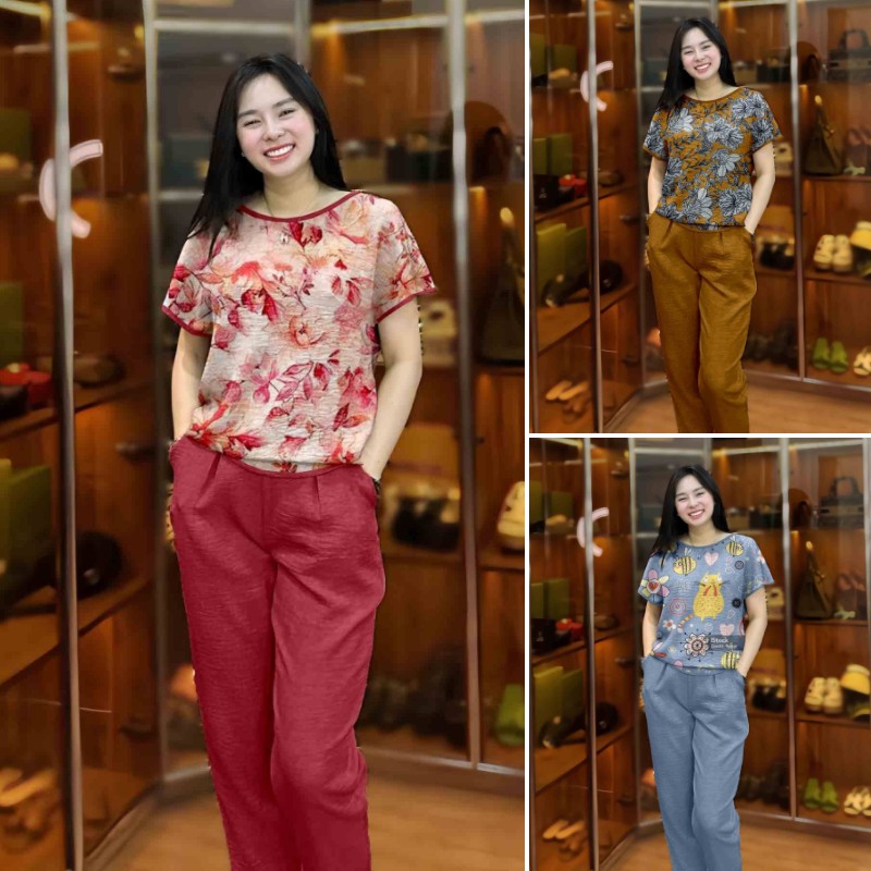 【diskon waktu terbatas】Pakaian baju lengan panjang, celana pinggang elastik kaki lurus, kain kualitas tinggi