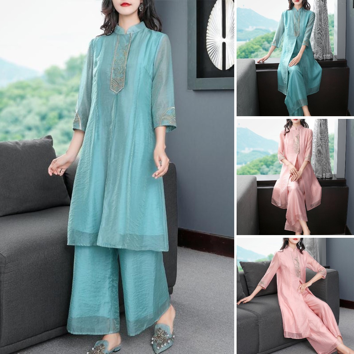 2 Menit LaluSetelan linen katun celana lebar kaki yang elegan [beli satu gratis satu] - beli satu gratis satu