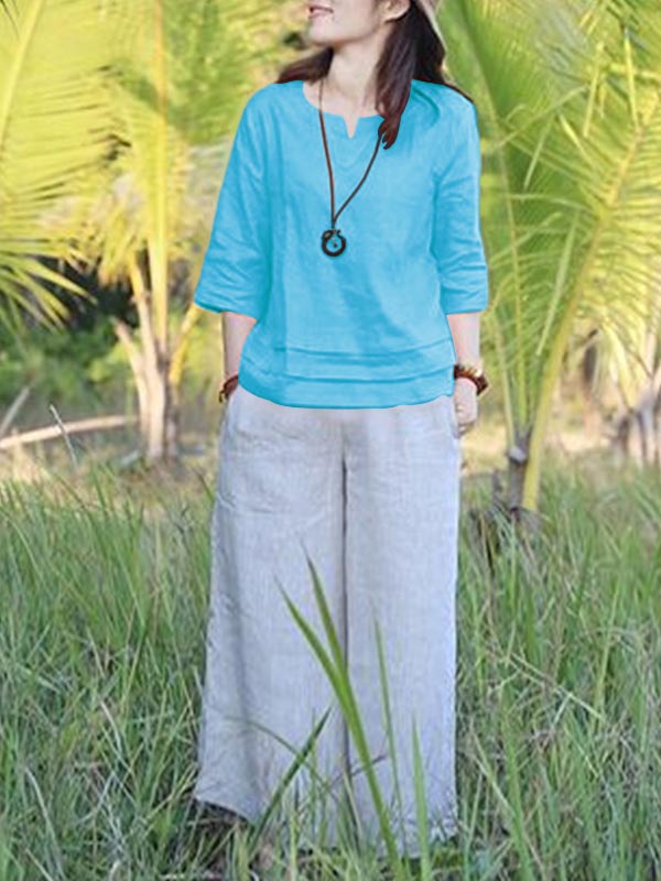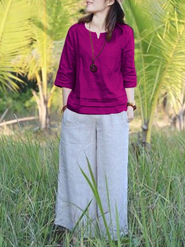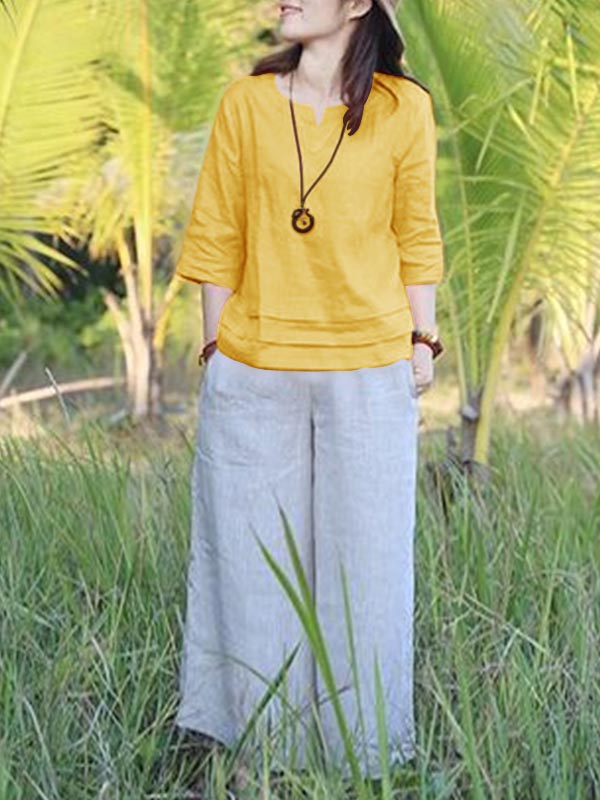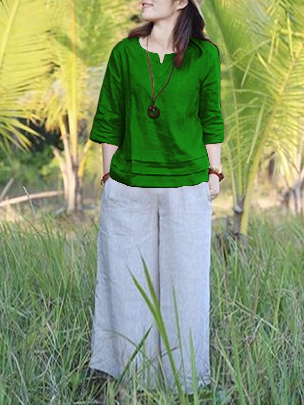 5 Menit LaluSet 2 potong celana lebar kaki katun dan linen warna solid gaya Jepang yang elegan - beli satu gratis satu