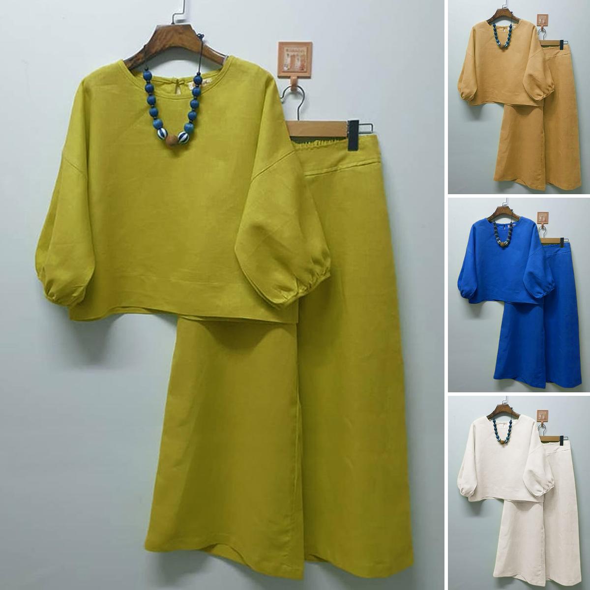 【diskon waktu terbatas】Pakaian baju lengan panjang, celana pinggang elastik kaki lurus, kain kualitas tinggi