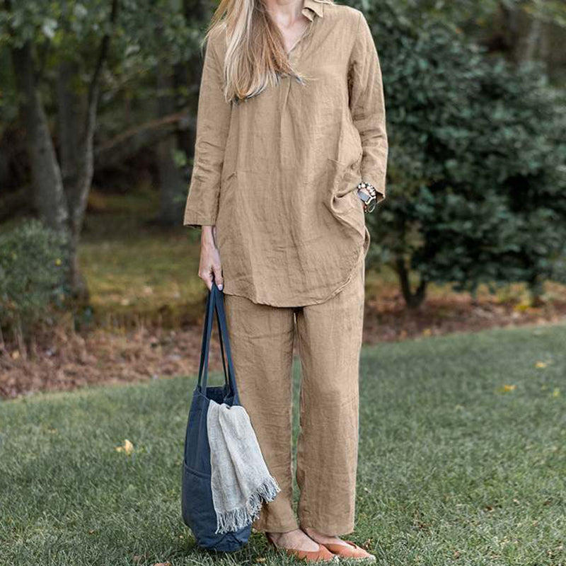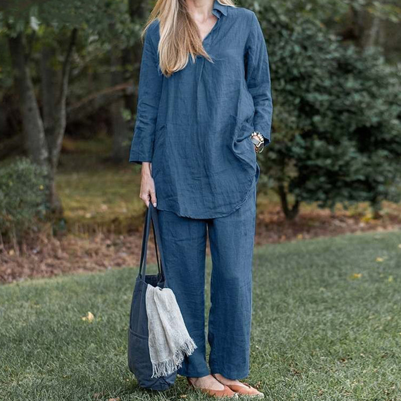 【diskon waktu terbatas】Pakaian baju lengan panjang, celana pinggang elastik kaki lurus, kain kualitas tinggi