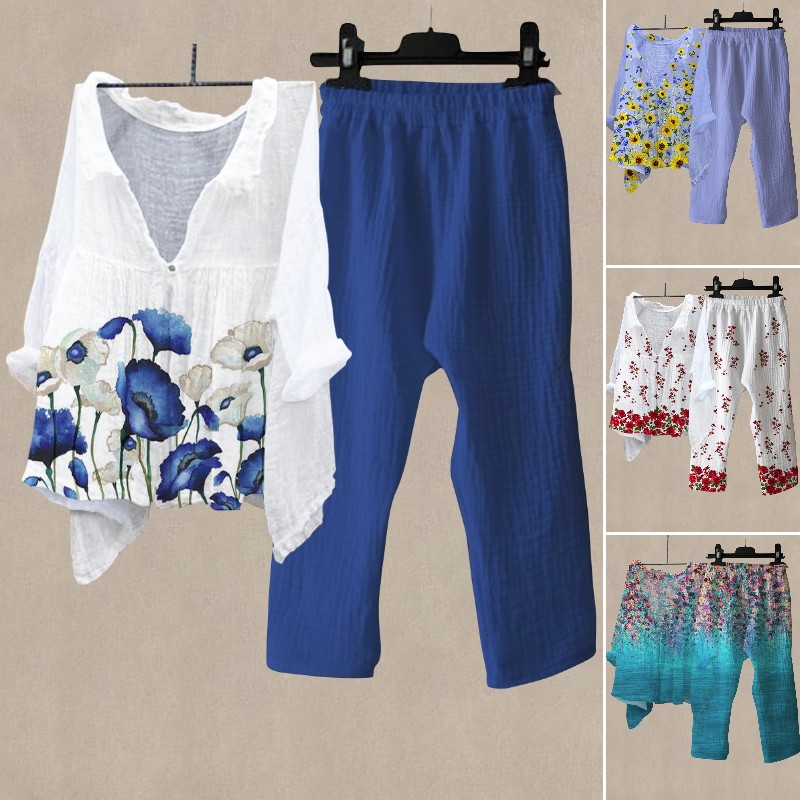【diskon waktu terbatas】Pakaian baju lengan panjang, celana pinggang elastik kaki lurus, kain kualitas tinggi
