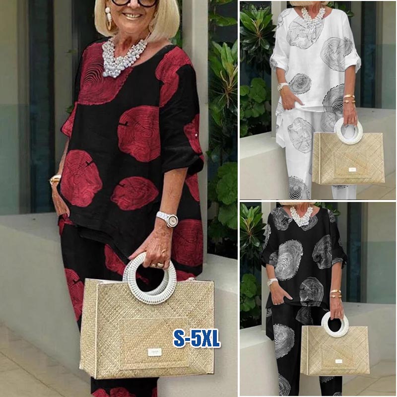 55 Menit Lalu50% off limited time,Wanita Tracksuit Cetak Floral 2pcs Pants Musim panas Seting Kasual 3/4 Blouse Urban Suits Loose Matching Sets Outifits - beli satu gratis satu(2 sets)