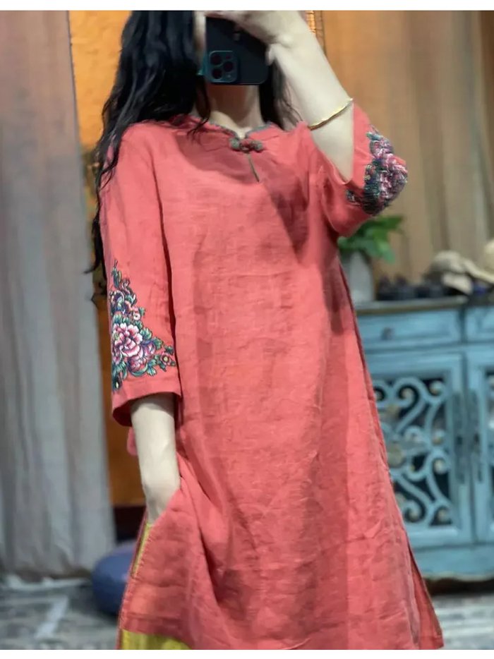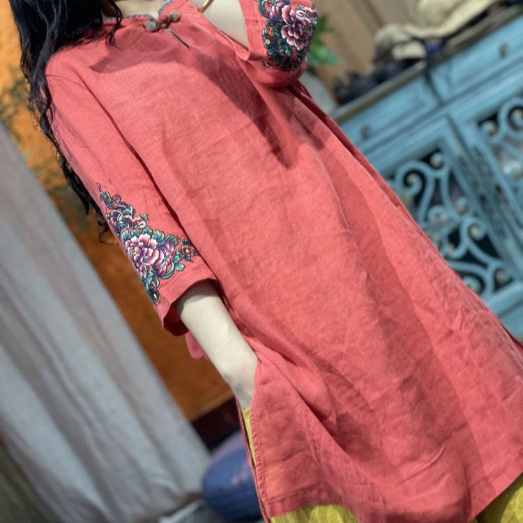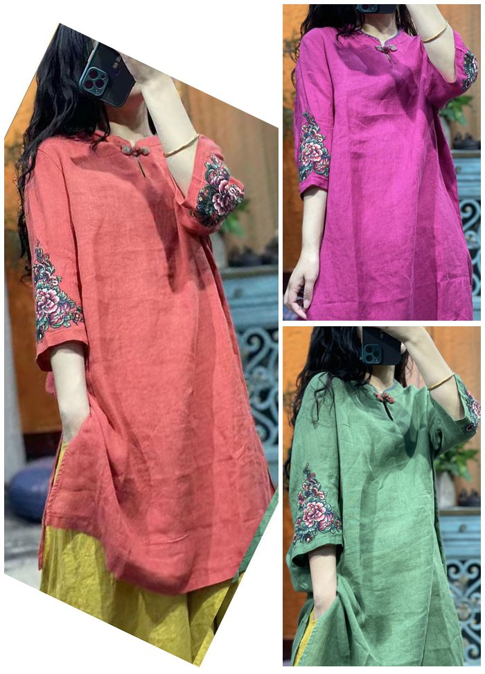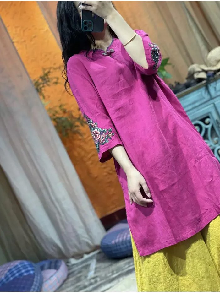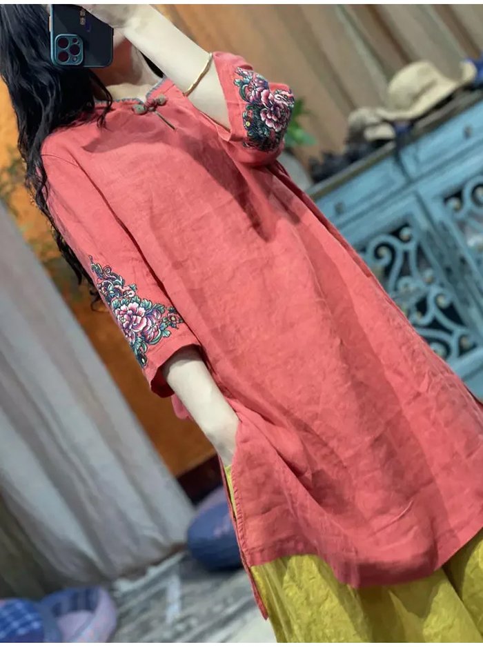 5 Menit LaluNow flash sale,50% OFF 【beli 1 gratis 1】Retro Embroidered Linen Cotton shirt - beli satu gratis satu(2 PCS)