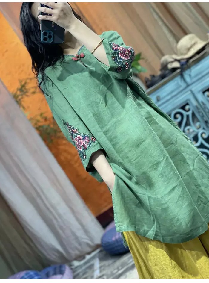 15 Menit LaluNow flash sale,50% OFF 【beli 1 gratis 1】Retro Embroidered Linen Cotton shirt - beli satu gratis satu(2 PCS)