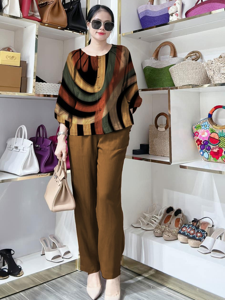【diskon waktu terbatas】Pakaian baju lengan panjang, celana pinggang elastik kaki lurus, kain kualitas tinggi