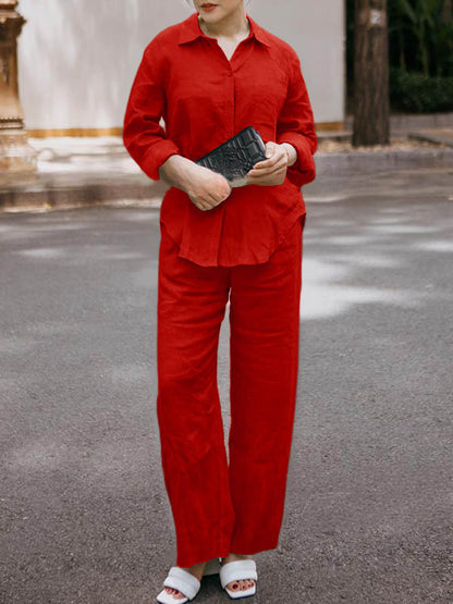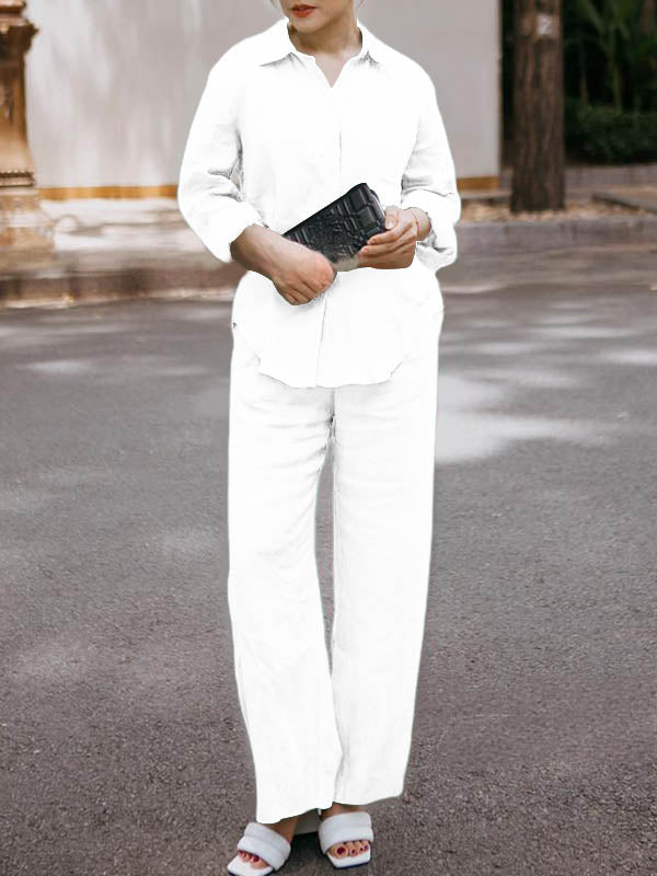 34 Menit LaluSet 2 potong celana lebar kaki katun dan linen warna solid gaya Jepang yang elegan - beli satu gratis satu