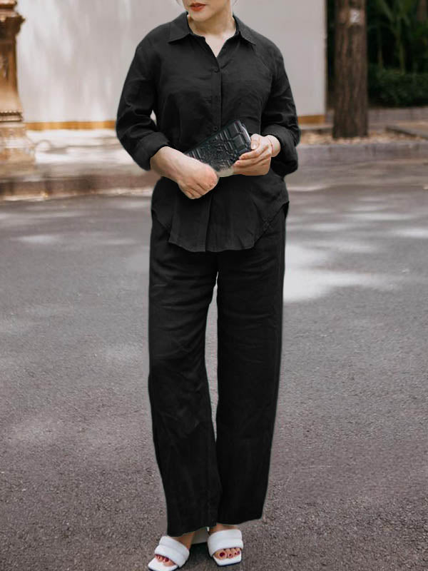 5 Menit LaluSet 2 potong celana lebar kaki katun dan linen warna solid gaya Jepang yang elegan - beli satu gratis satu
