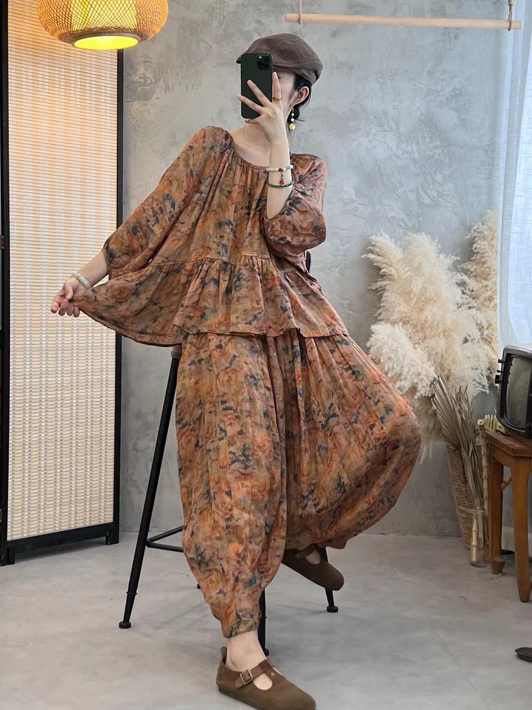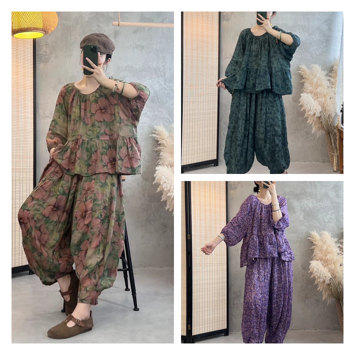 【diskon waktu terbatas】Pakaian baju lengan panjang, celana pinggang elastik kaki lurus, kain kualitas tinggi