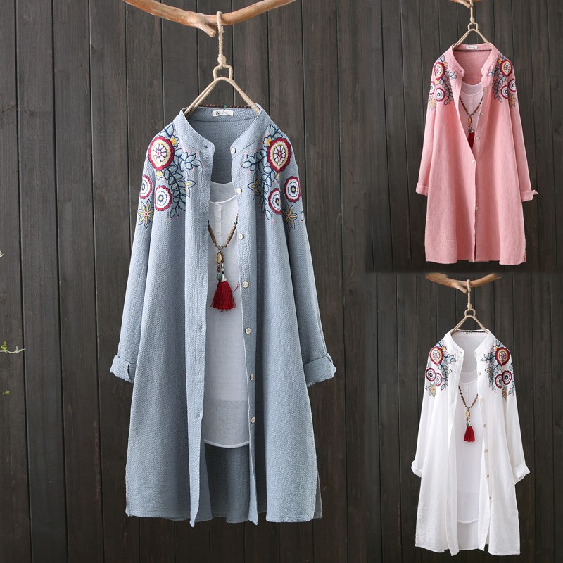 55 Menit Lalu【beli satu gratis satu】Kemeja katun bordir ukuran sedang - beli satu gratis satu