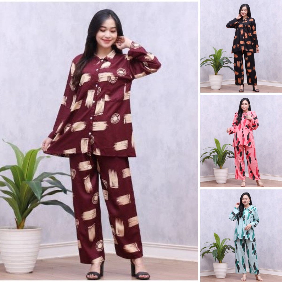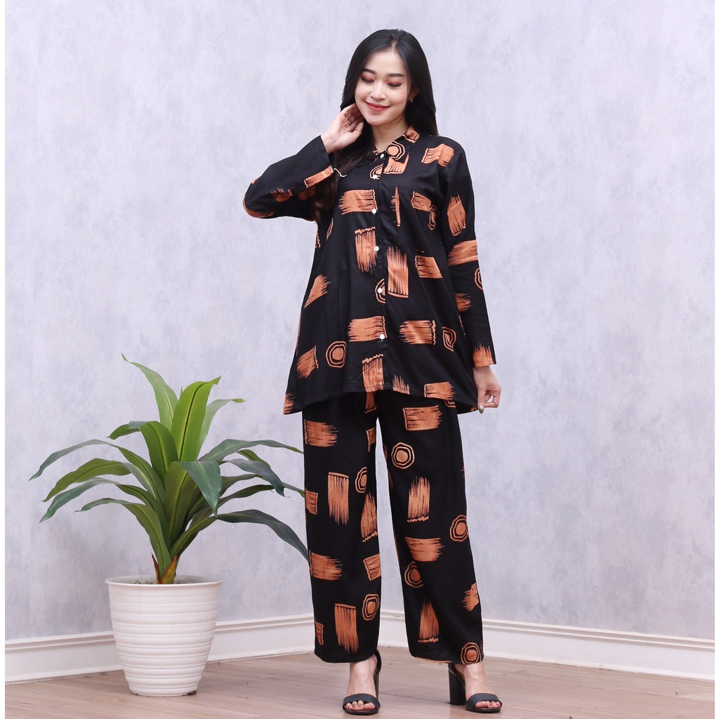 【diskon waktu terbatas】Pakaian baju lengan panjang, celana pinggang elastik kaki lurus, kain kualitas tinggi