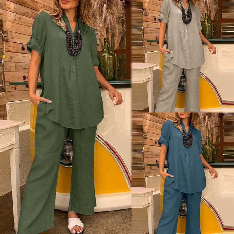 【diskon waktu terbatas】Pakaian baju lengan panjang, celana pinggang elastik kaki lurus, kain kualitas tinggi