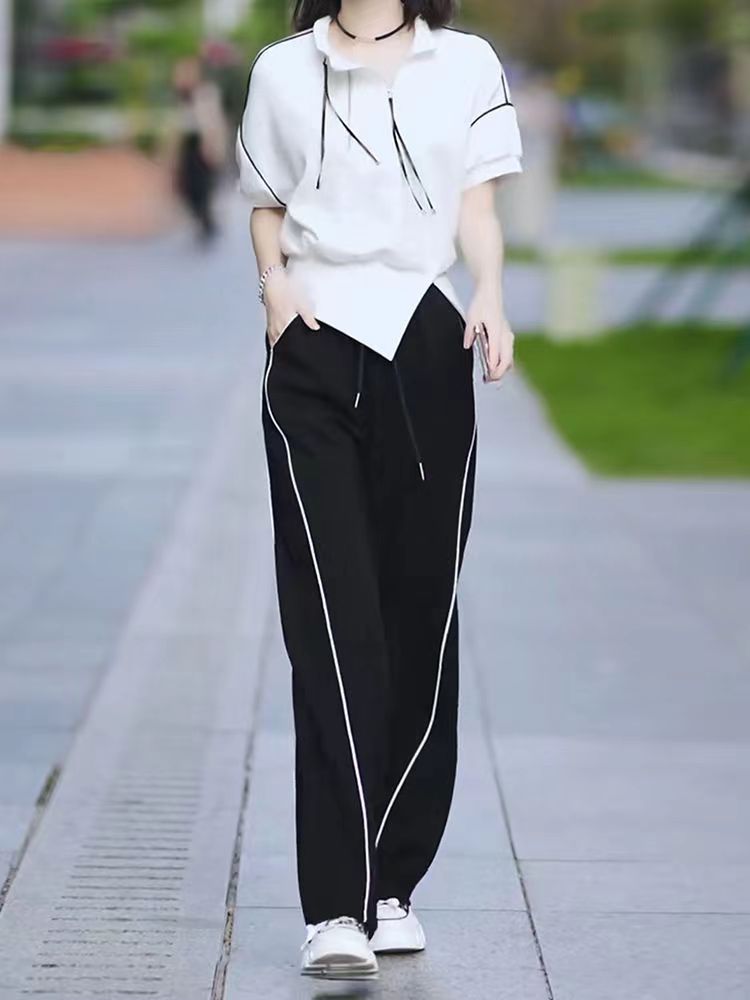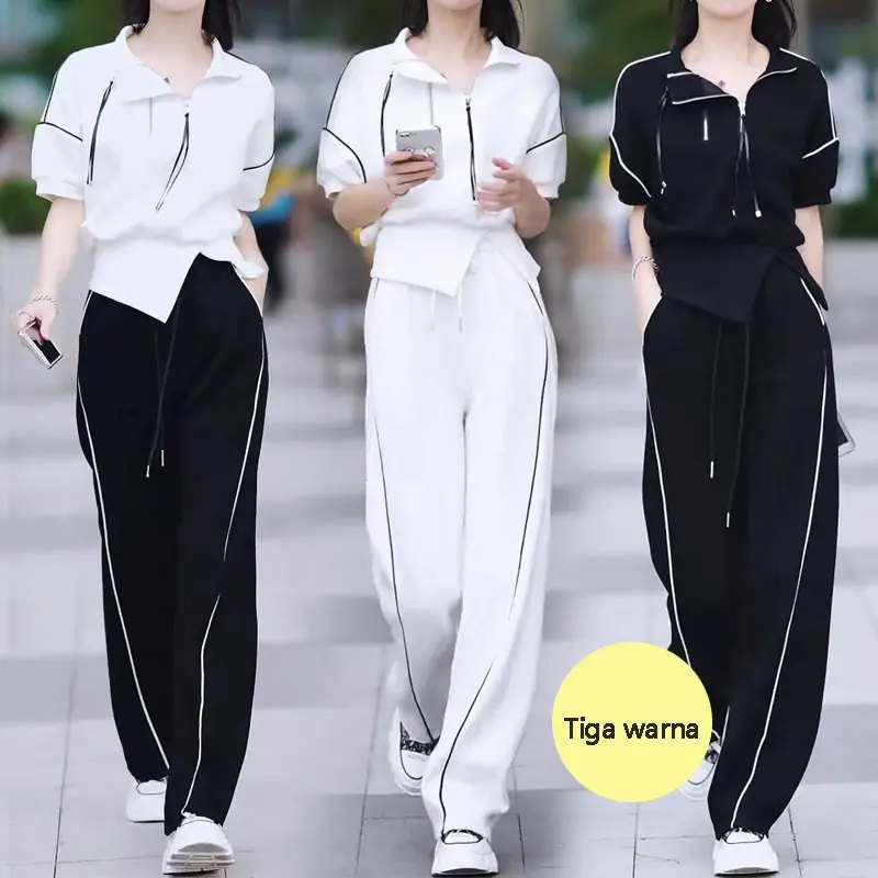 【diskon waktu terbatas】Pakaian baju lengan panjang, celana pinggang elastik kaki lurus, kain kualitas tinggi