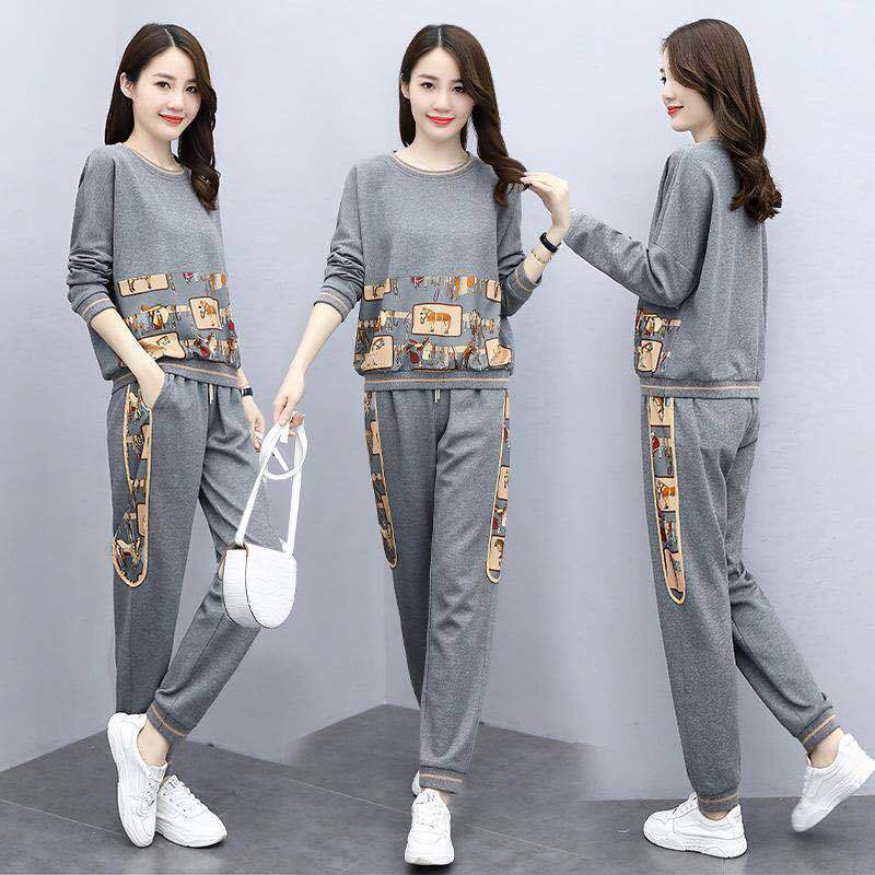 【diskon waktu terbatas】Pakaian baju lengan panjang, celana pinggang elastik kaki lurus, kain kualitas tinggi