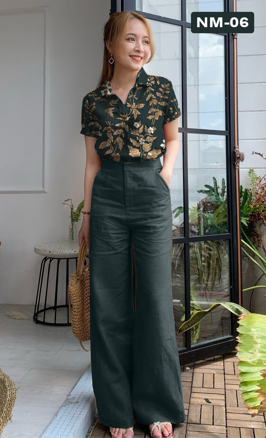 【diskon waktu terbatas】Pakaian baju lengan panjang, celana pinggang elastik kaki lurus, kain kualitas tinggi