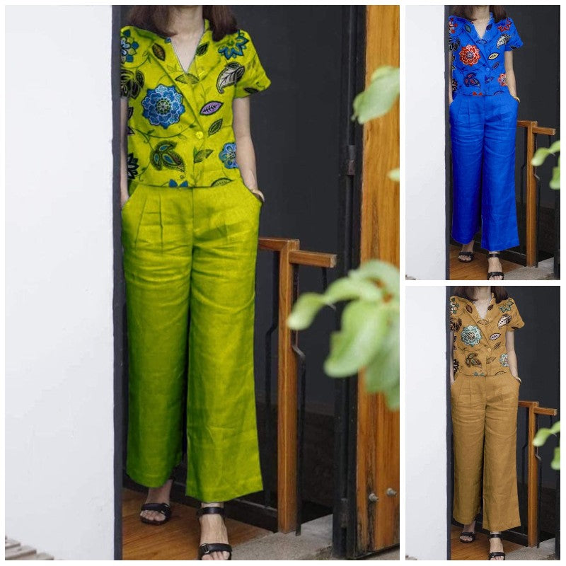 【diskon waktu terbatas】Pakaian baju lengan panjang, celana pinggang elastik kaki lurus, kain kualitas tinggi
