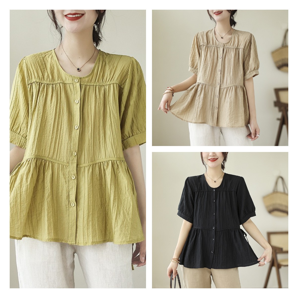 37 Menit Lalukemeja linen katun pelangsing pinggang - beli satu gratis satu