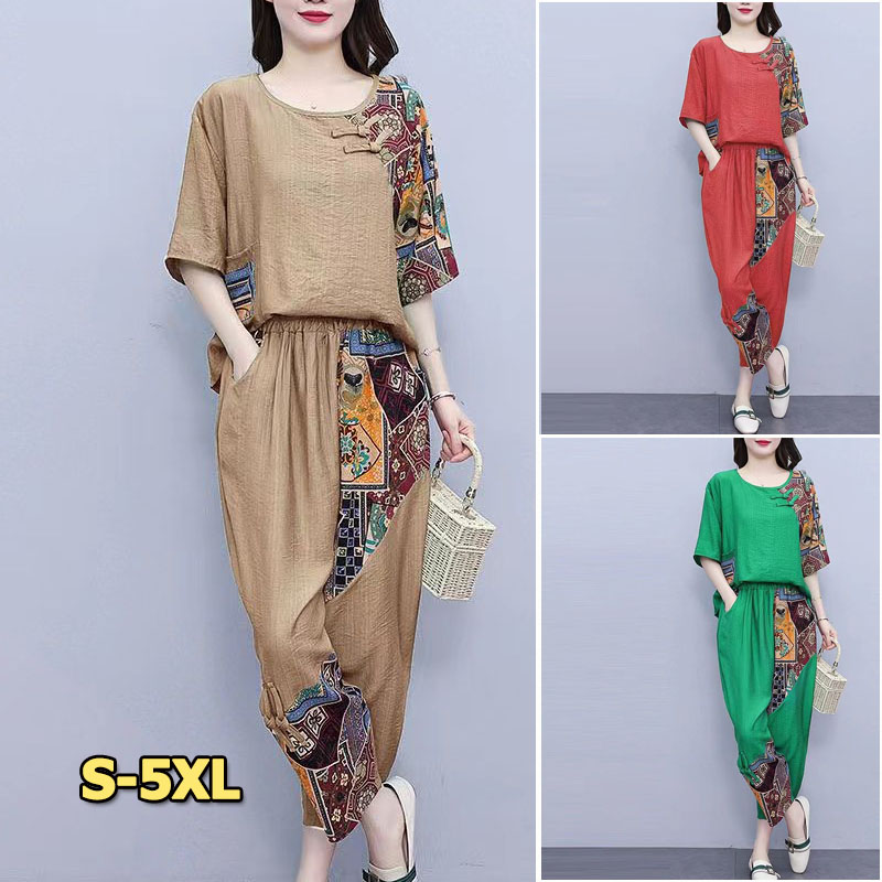 2 Menit Lalu【beli 1 gratis 1】Penumpang baru! Kualitas tinggi kapas dan linen set 2 potong (atas+celana) - beli satu gratis satu(2 sets)