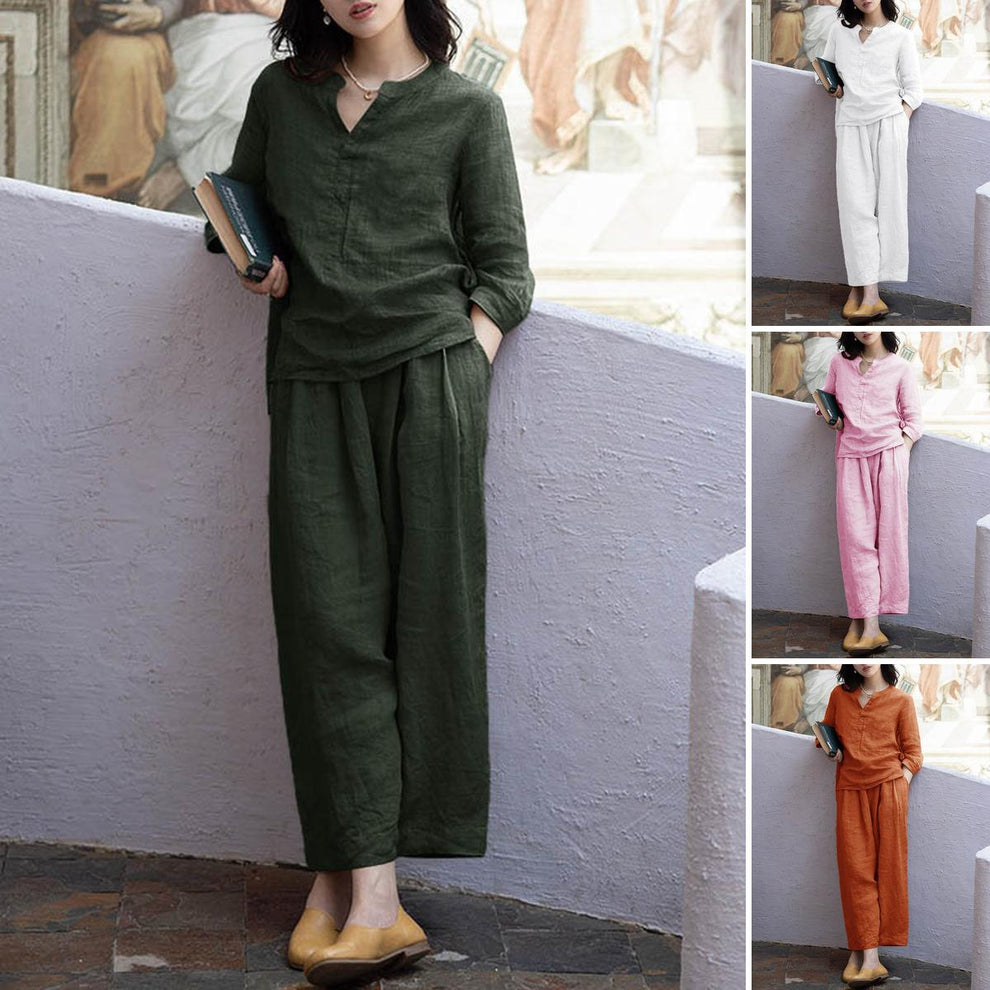 【diskon waktu terbatas】Pakaian baju lengan panjang, celana pinggang elastik kaki lurus, kain kualitas tinggi