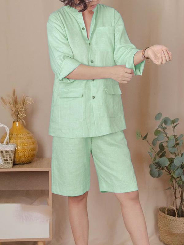 2 Menit LaluSet 2 potong celana lebar kaki katun dan linen warna solid gaya Jepang yang elegan - beli satu gratis satu