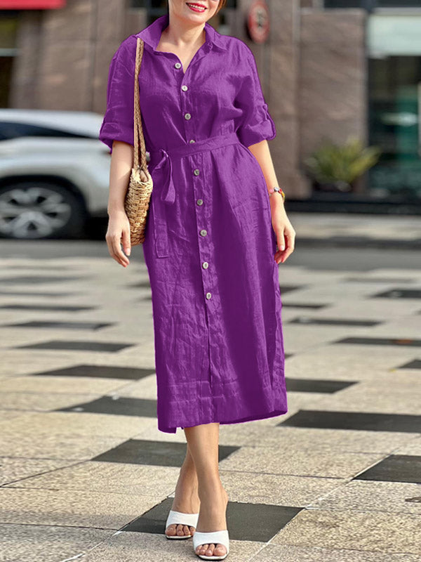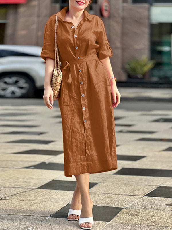 15 Menit Lalu[Beli Satu Gratis Satu] Butang Front Belted Midi Dress - beli satu gratis satu(2 PCS)