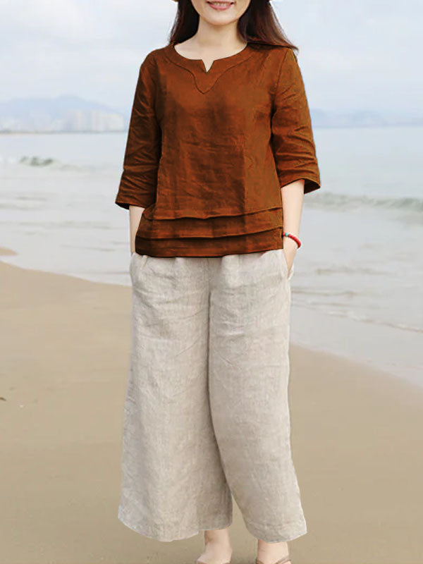 5 Menit LaluSet 2 potong celana lebar kaki katun dan linen warna solid gaya Jepang yang elegan - beli satu gratis satu