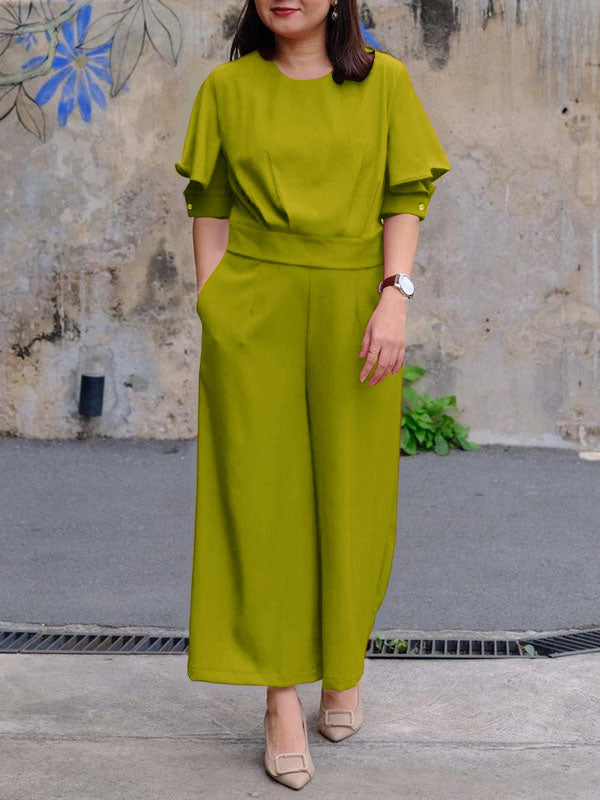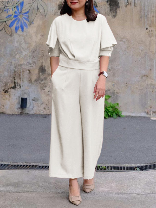 2 Menit LaluSet 2 potong celana lebar kaki katun dan linen warna solid gaya Jepang yang elegan - beli satu gratis satu