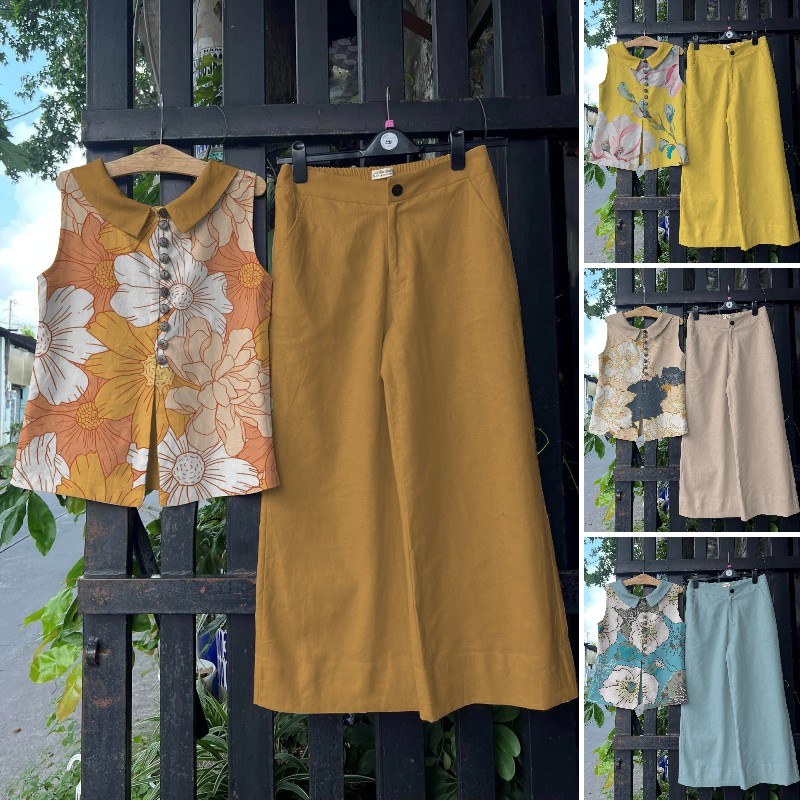 15 Menit LaluSetelan katun dan linen tanpa lengan, celana pinggang elastis lurus, kain berkualitas tinggi - beli satu gratis satu(2 sets)