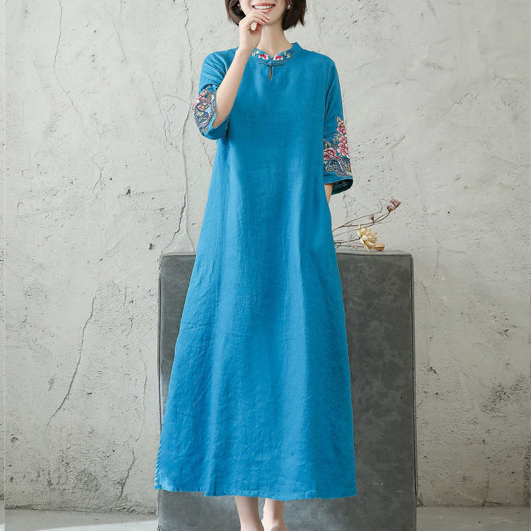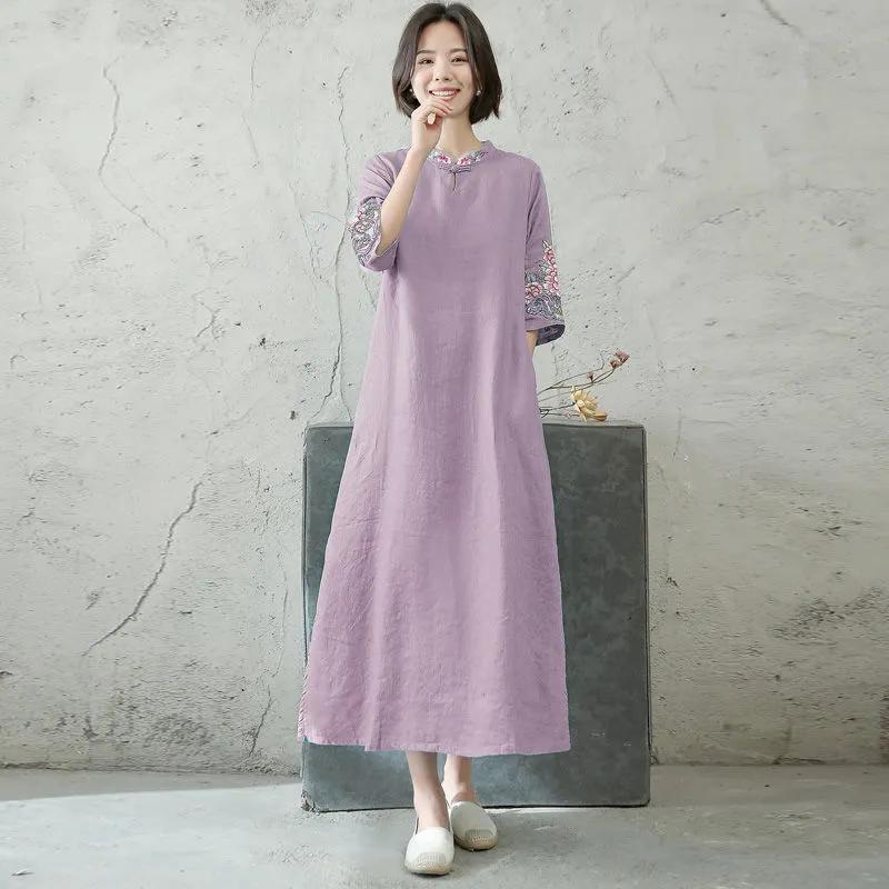 2 Menit LaluRok panjang katun dan linen yang dirancang dengan tangan, kain katun dan linen alami, bernapas dan tidak alergi, sangat sejuk di musim panas, cocok untuk pakaian sehari-hari