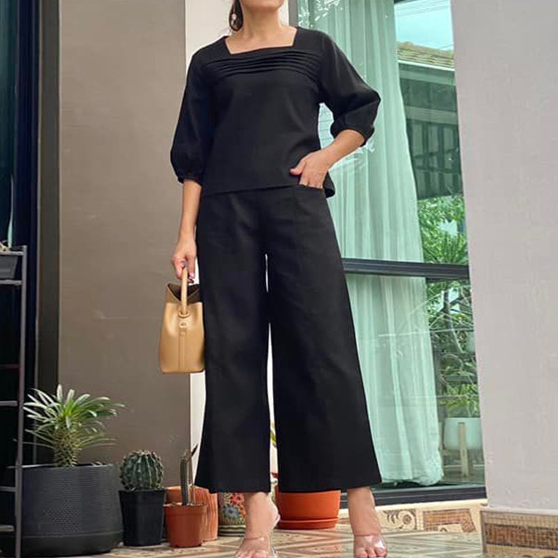 15 Menit LaluSet 2 potong celana lebar kaki katun dan linen warna solid gaya Jepang yang elegan - beli satu gratis satu