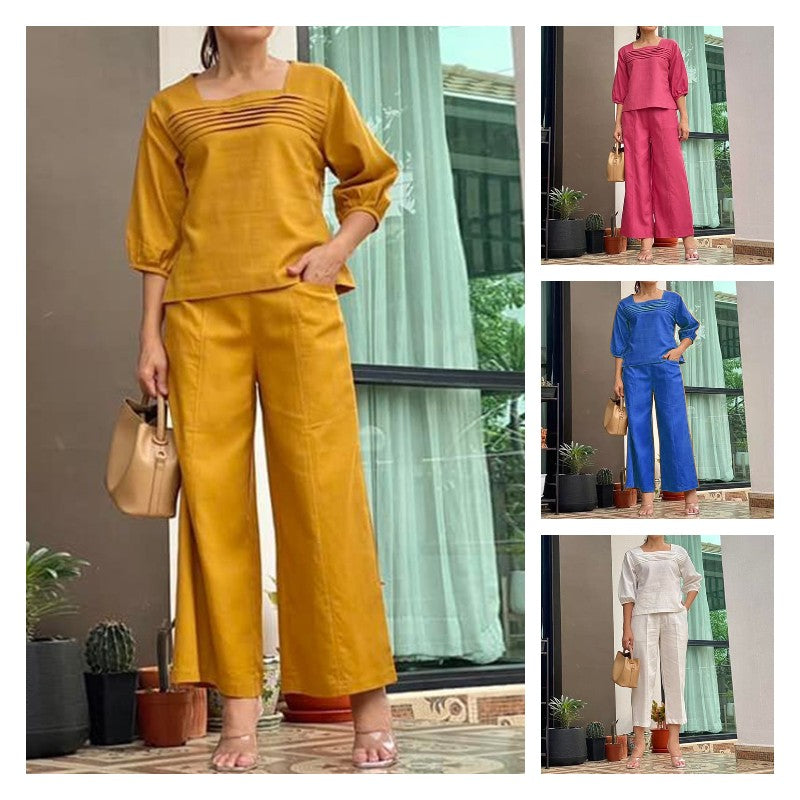 37 Menit LaluSet 2 potong celana lebar kaki katun dan linen warna solid gaya Jepang yang elegan - beli satu gratis satu