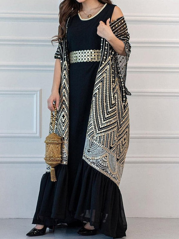 5 Menit LaluGrafik Cetak Ruffle Hem Belted Dress & Cardigan Two-Piece Set - beli satu gratis satu(2 PCS)