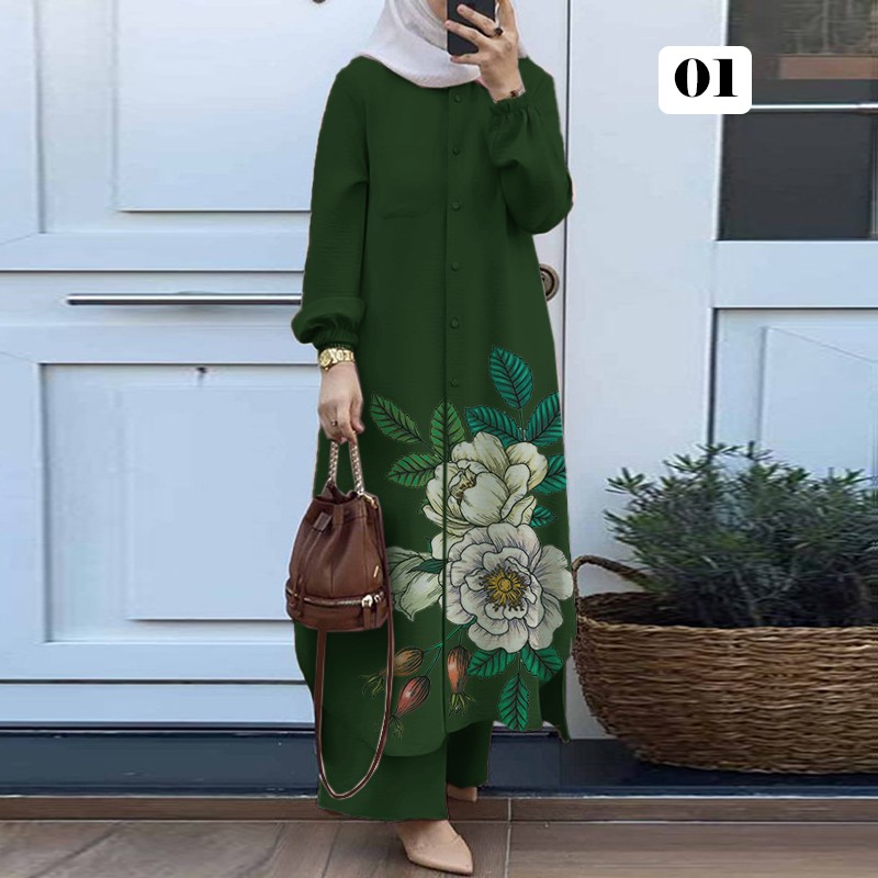 【diskon waktu terbatas】Pakaian baju lengan panjang, celana pinggang elastik kaki lurus, kain kualitas tinggi