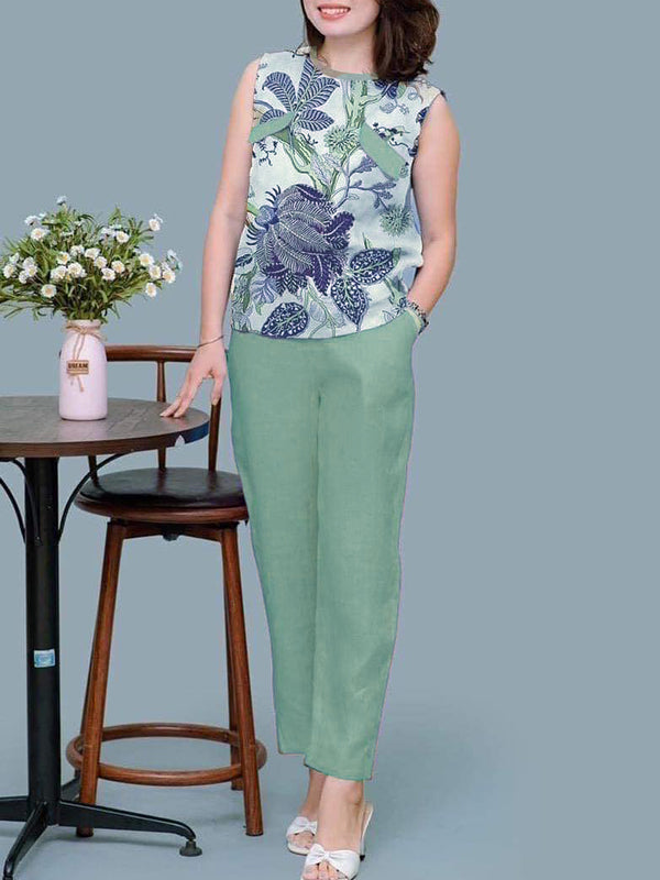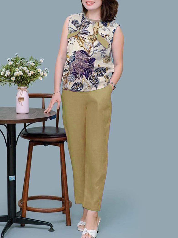 2 Menit LaluSet 2 potong celana lebar kaki katun dan linen warna solid gaya Jepang yang elegan - beli satu gratis satu