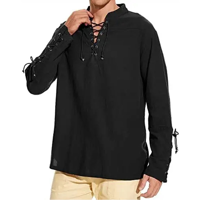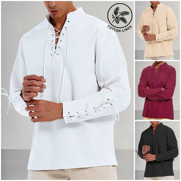 8 Menit Lalu[beli satu gratis satu]2023 Kaos V-leher Pria Baru T-shirt Fashion Vintage Thin Long Sleeve Top Line Casual Breathable Viking Front Lace Up Man Shirts - beli satu gratis satu(2 PCS)
