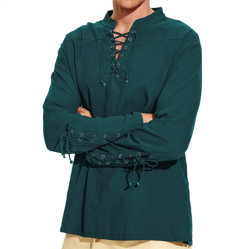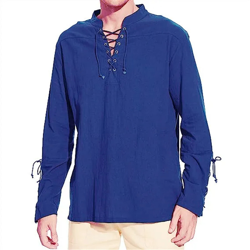37 Menit Lalu[beli satu gratis satu]2023 Kaos V-leher Pria Baru T-shirt Fashion Vintage Thin Long Sleeve Top Line Casual Breathable Viking Front Lace Up Man Shirts - beli satu gratis satu(2 PCS)