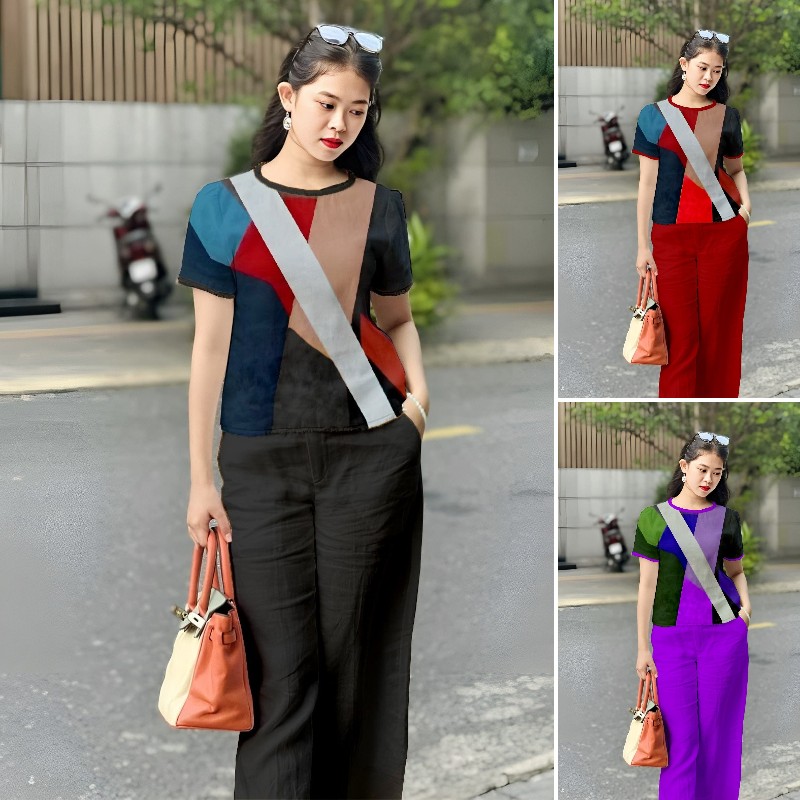 【diskon waktu terbatas】Pakaian baju lengan panjang, celana pinggang elastik kaki lurus, kain kualitas tinggi