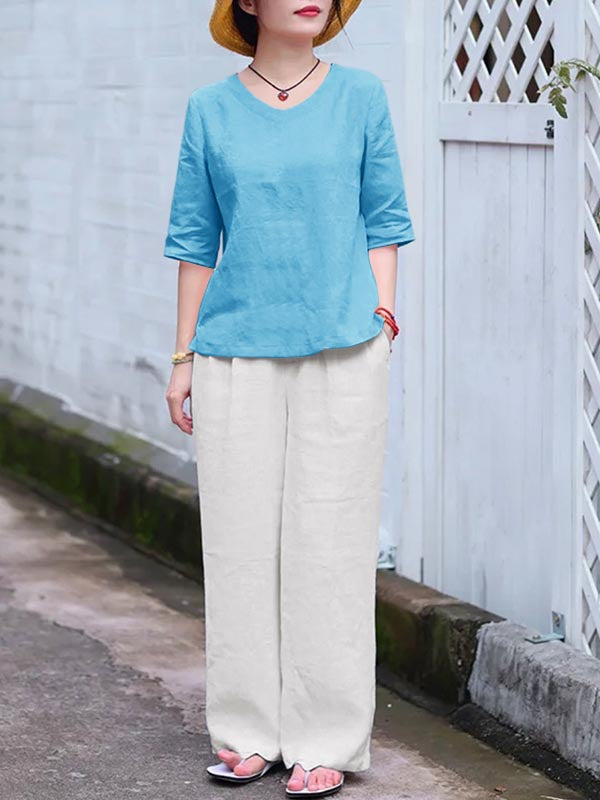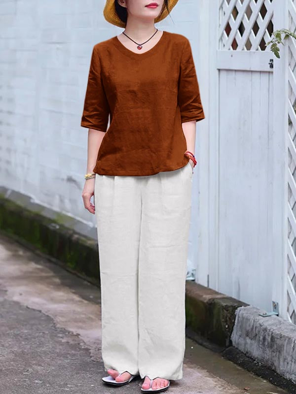 5 Menit LaluSet 2 potong celana lebar kaki katun dan linen warna solid gaya Jepang yang elegan - beli satu gratis satu