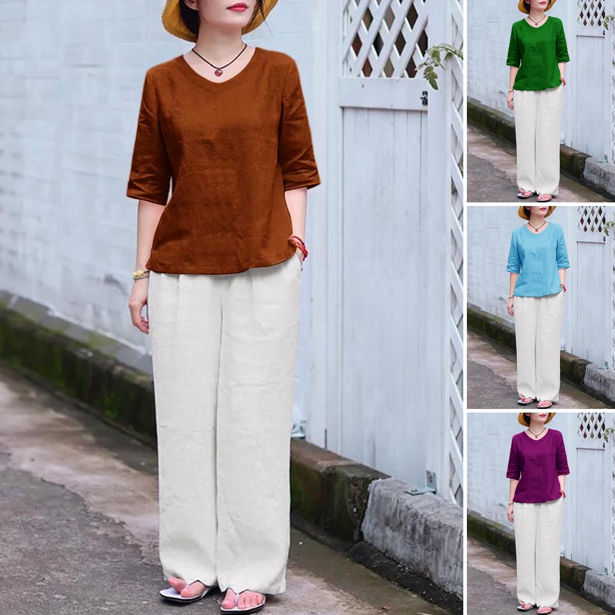 34 Menit LaluSet 2 potong celana lebar kaki katun dan linen warna solid gaya Jepang yang elegan - beli satu gratis satu