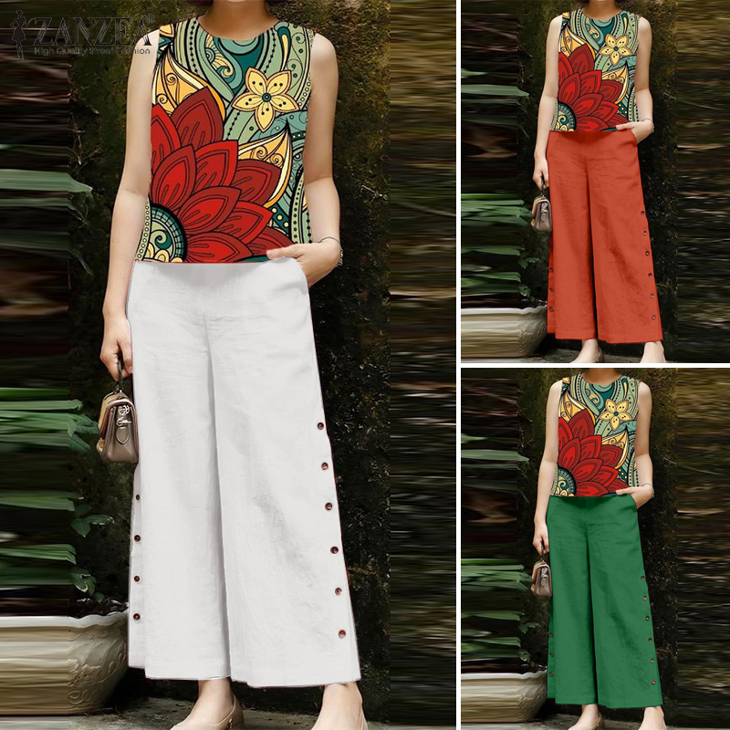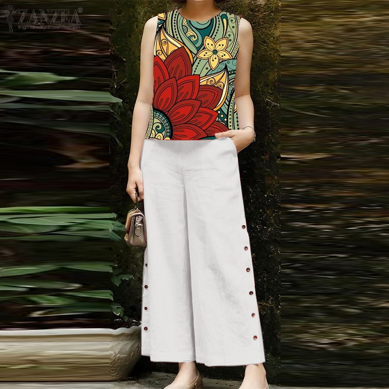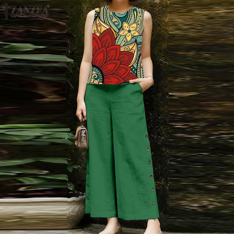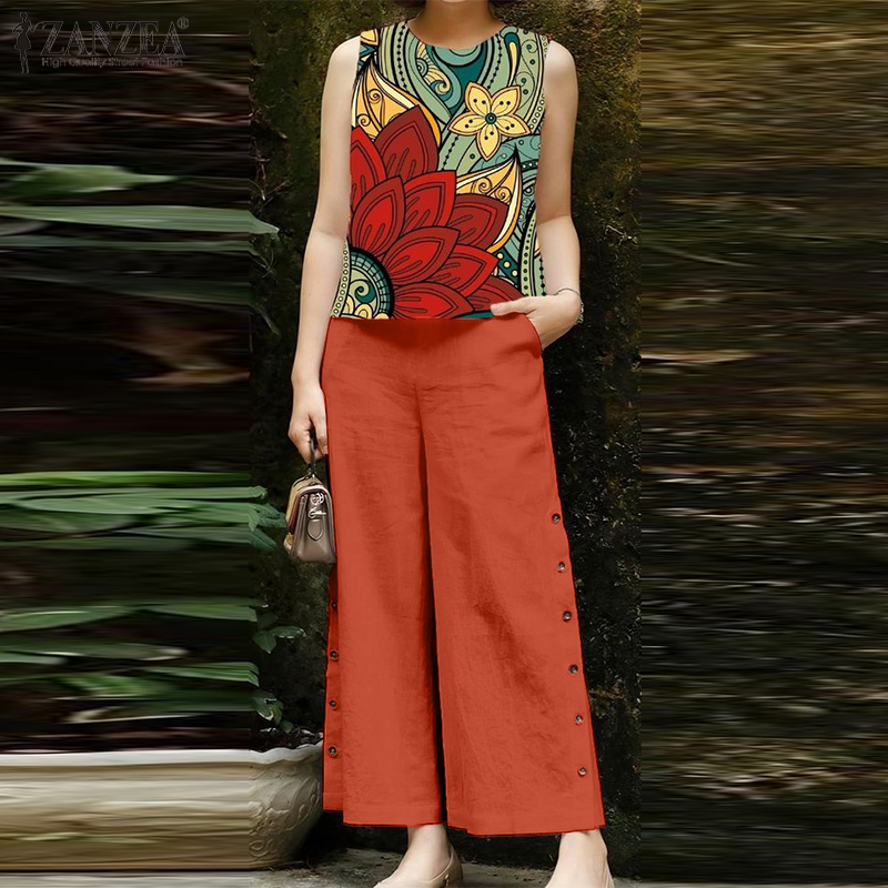 2 Menit LaluSetelan katun dan linen tanpa lengan, celana pinggang elastis lurus, kain berkualitas tinggi - beli satu gratis satu(2 sets)