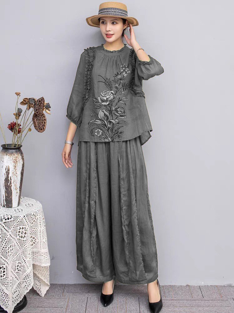 【diskon waktu terbatas】Pakaian baju lengan panjang, celana pinggang elastik kaki lurus, kain kualitas tinggi