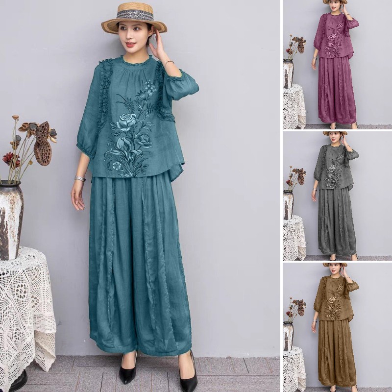 55 Menit LaluPakaian baju lengan panjang, celana pinggang elastik kaki lurus, kain kualitas tinggi - beli satu gratis satu(2 sets)